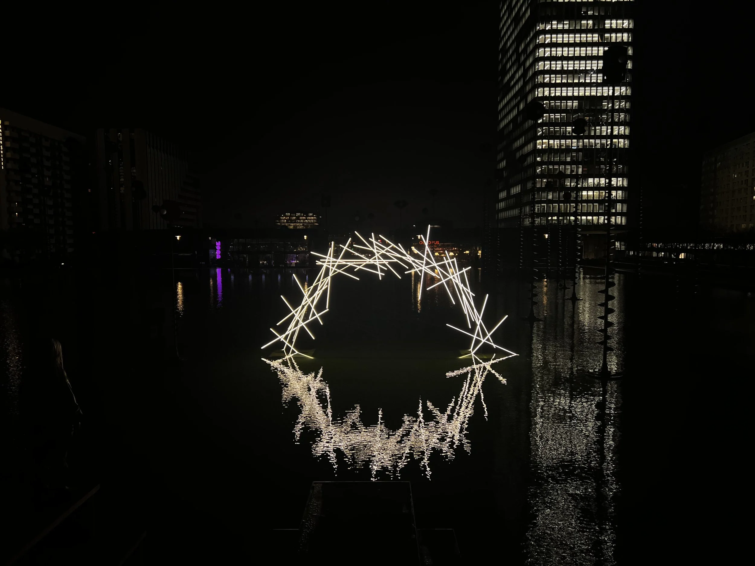 Encor Studio's installation “Hemispheric Frontier” offers an enigmatic and almost organic breathing immersive experience. It blurs our senses and challenges the notion of boundaries. Reflected by neon lights on a watery surface, the installation plays with perceptions of sharpness and murkiness, light and water, reflection, and transparency, encouraging viewers to explore new dimensions of reality.