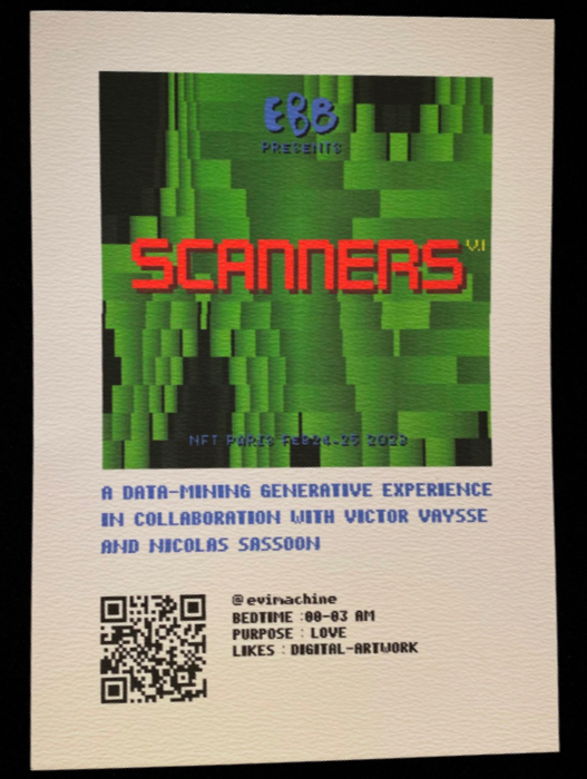 The first edition of SCANNERS was announced at NFT Paris conceived by EBB Global in collaboration with Nicolas Sassoon and Computedvv.
